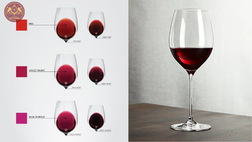Nếu nhìn kỹ hơn, bạn có thể thấy sự tương phản của màu sắc, từ viền rượu vang với màu đỏ tím đậm đến trung tâm rượu với màu đỏ ruby sáng. Điều này tạo ra một cảm giác mê hoặc và thú vị cho mắt.